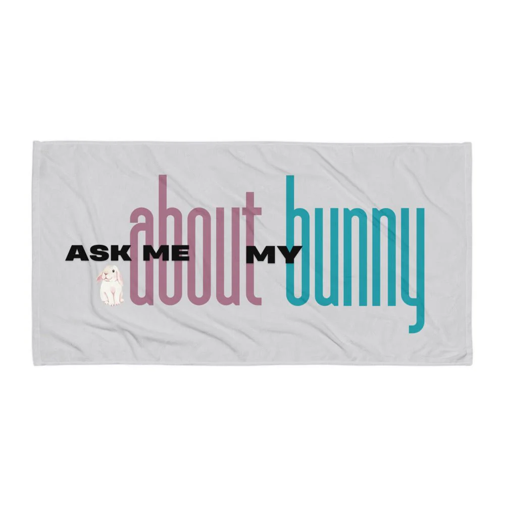 Make a splash this summer with our vibrant "Ask Me About My Bunny" beach towel! Crafted from lightweight, absorbent material, this towel is perfect for soaking up the sun or drying off after a refreshing dip. Its eye-catching colors and playful message are sure to turn heads and spark conversations, making it a must-have accessory for beach days, pool parties, or picnics. Embrace your fun side and let your towel do the talking—grab yours today and hop into summer fun!