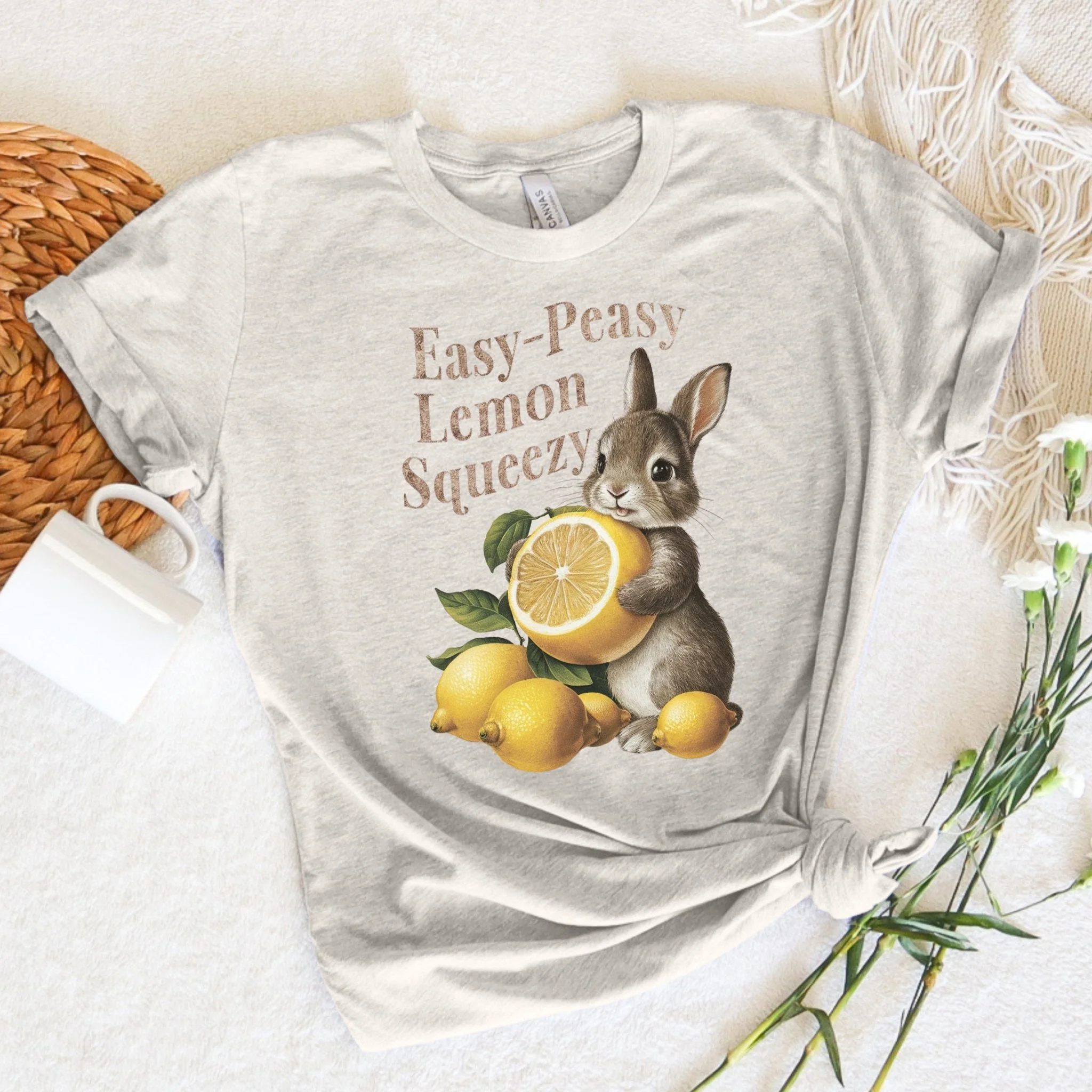 Get ready to show off your fun side with our "Easy-Peasy Lemon Squeezy" t-shirt! This comfy tee features a playful statement that’s perfect for anyone who loves a bit of humor and positive attitude in their wardrobe. Made from soft, breathable fabric, it’s ideal for casual outings or lounging at home. Whether you're a fan of lemons or just enjoy a good bun, this shirt is a must-have addition to your collection!