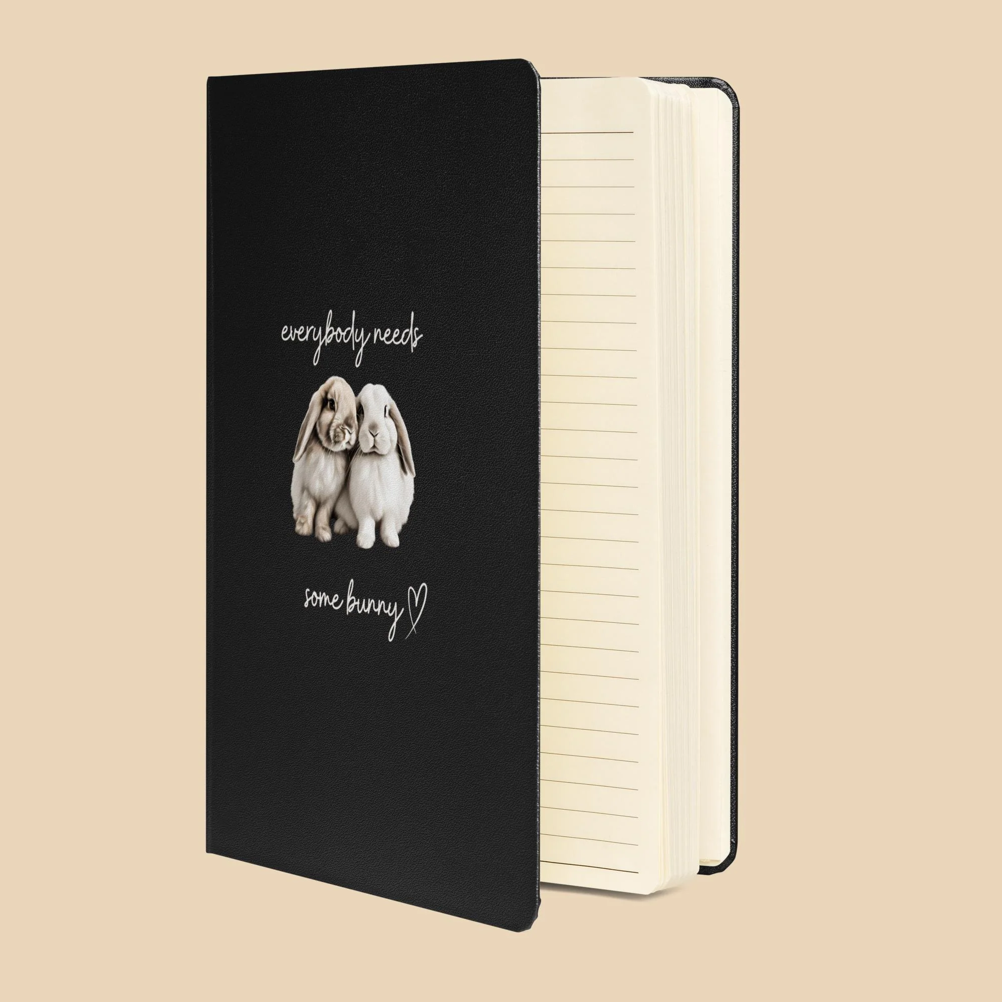 Get ready to hop into organization with our Some Bunny Hardcover Bound Notebook! This durable and high-quality notebook features the sweetest bunny dup and the phrase "every bunny needs some bunny" design on the front, adding a playful touch to your note-taking. Keep track of all your belongings with the expandable inner pockets and easily mark your place with the ribbon marker and matching elastic band. A must-have for any organized individual, spreading the love!